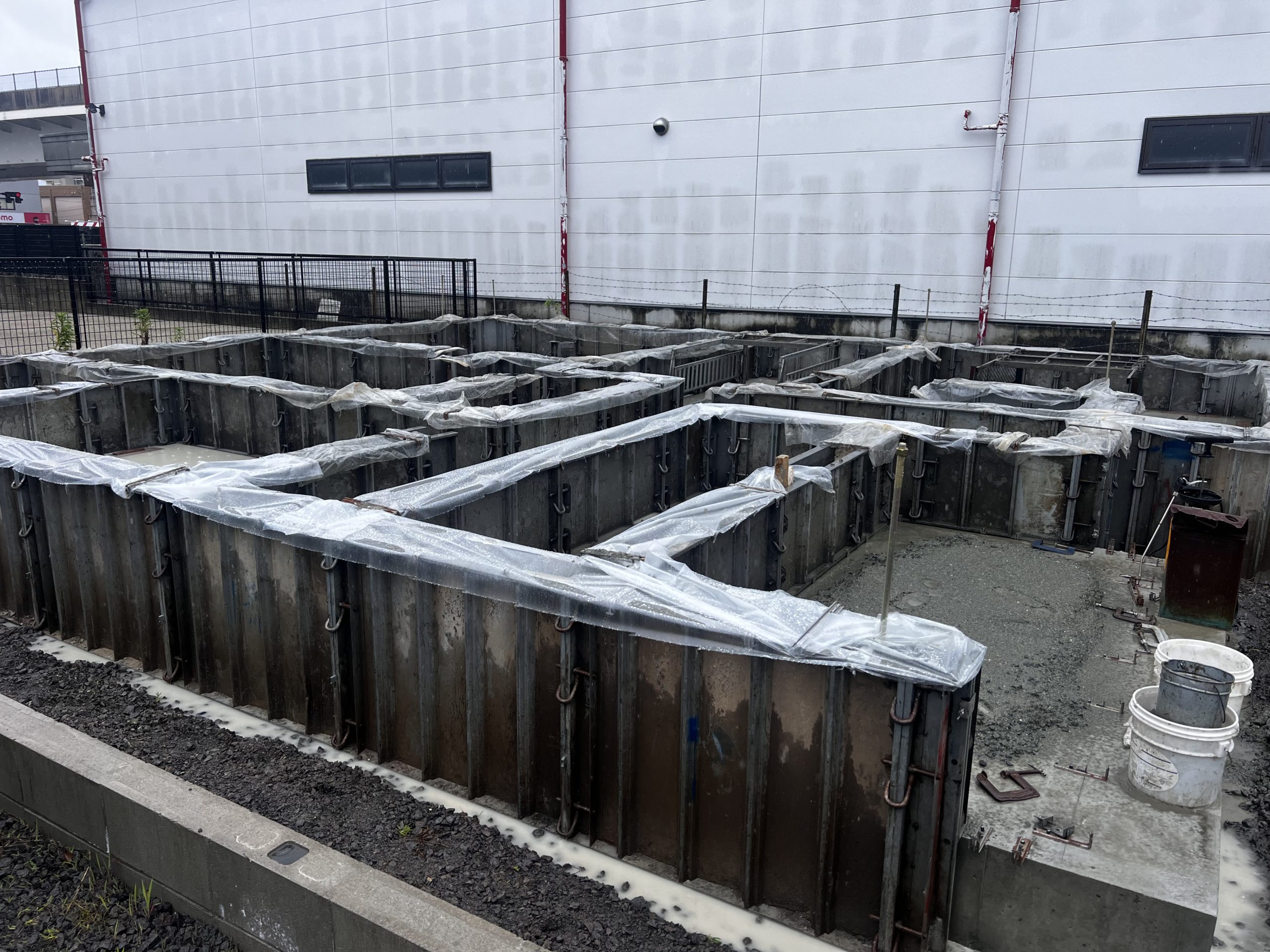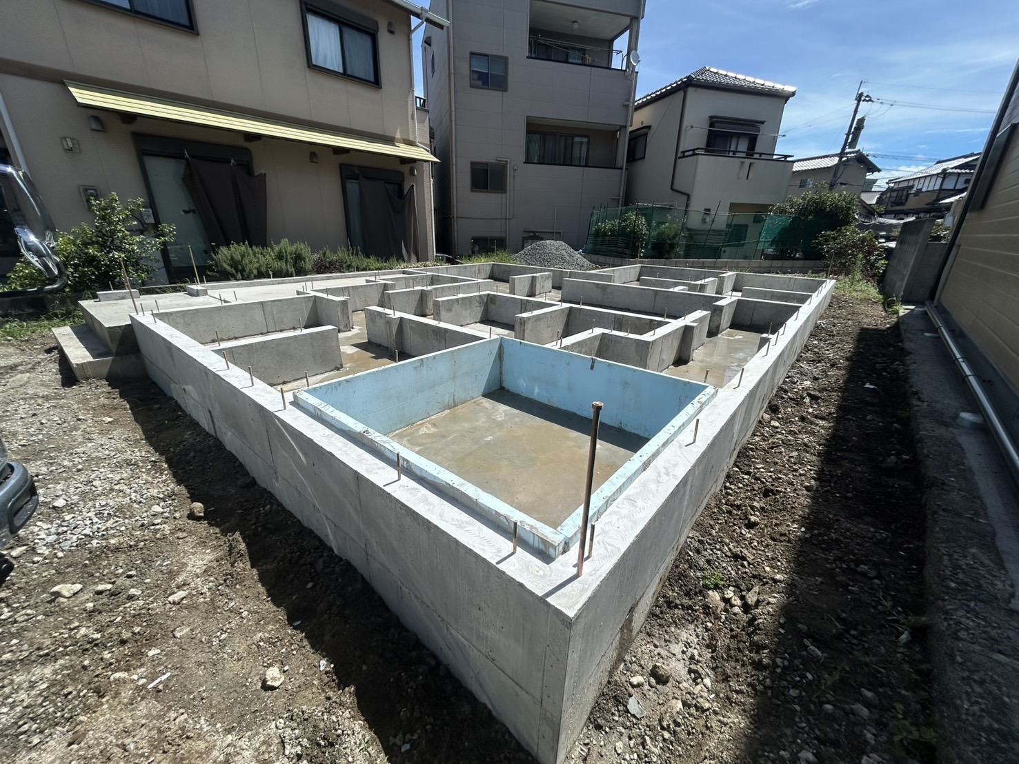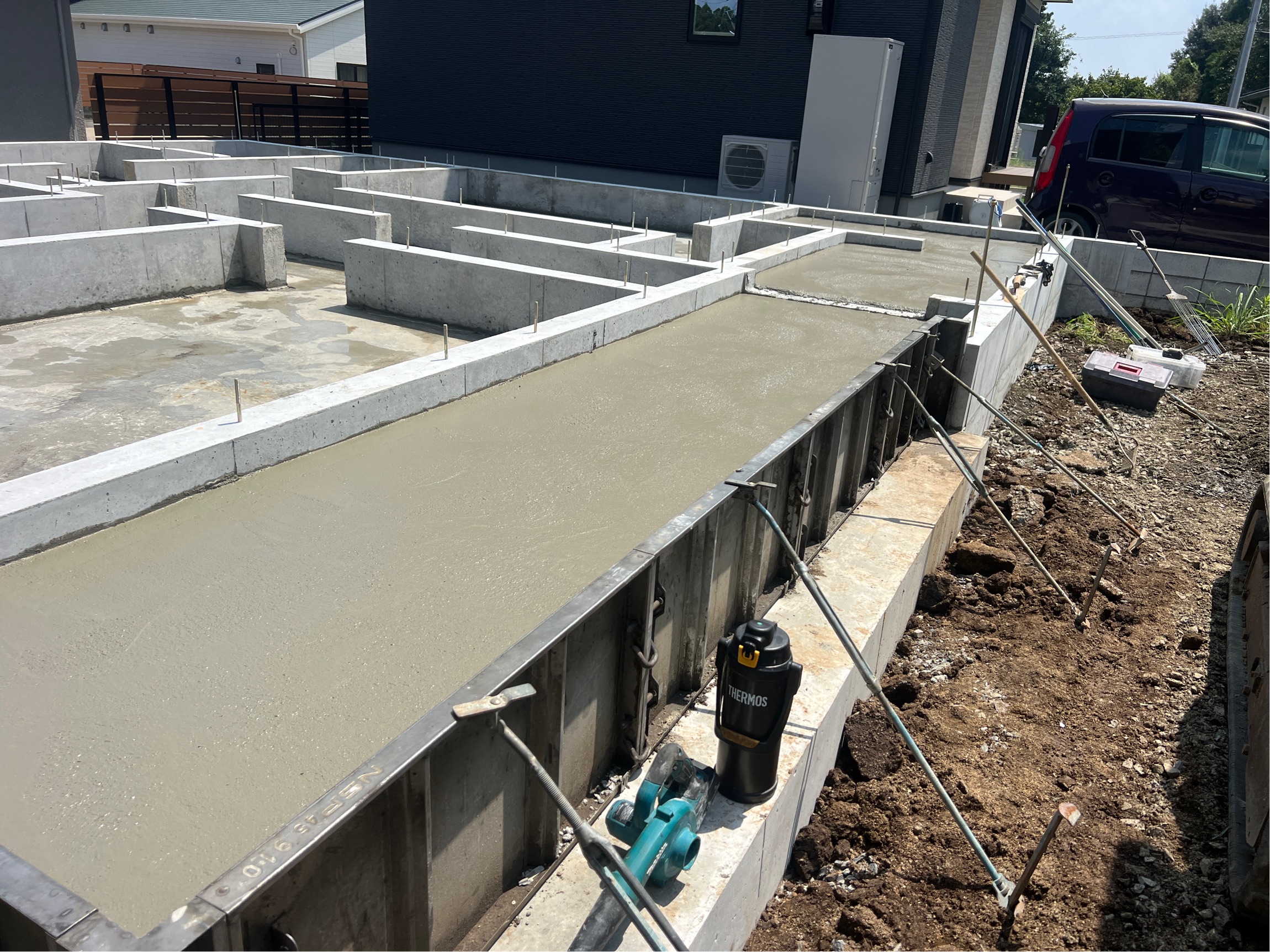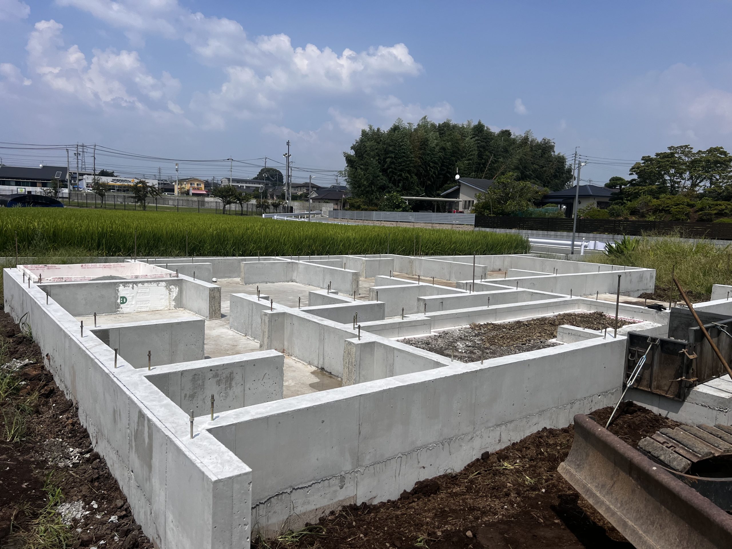 新規メーカー鬼丸ホーム様😊❗️立ち上がり状況です‼️段々日中は、暑くなり生コンの乾きが早くなってきてますこれからが大変な時期になりそうです😭