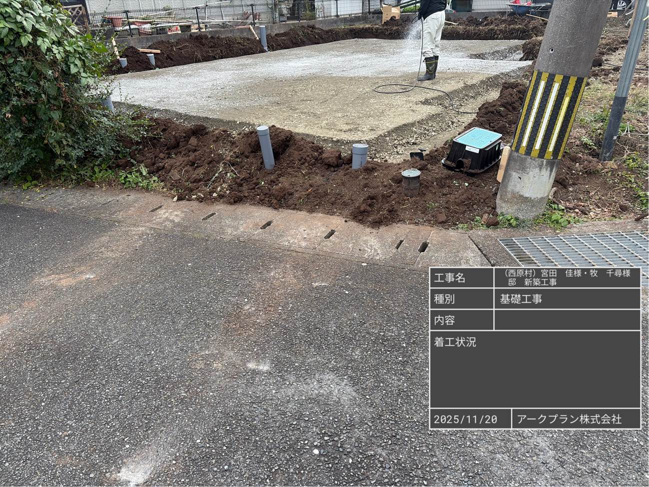 新規着工西原村での作業を行いました🫡土壌処理も時間通りには行きませんでしたが、無事ステコンまで完了です🙇