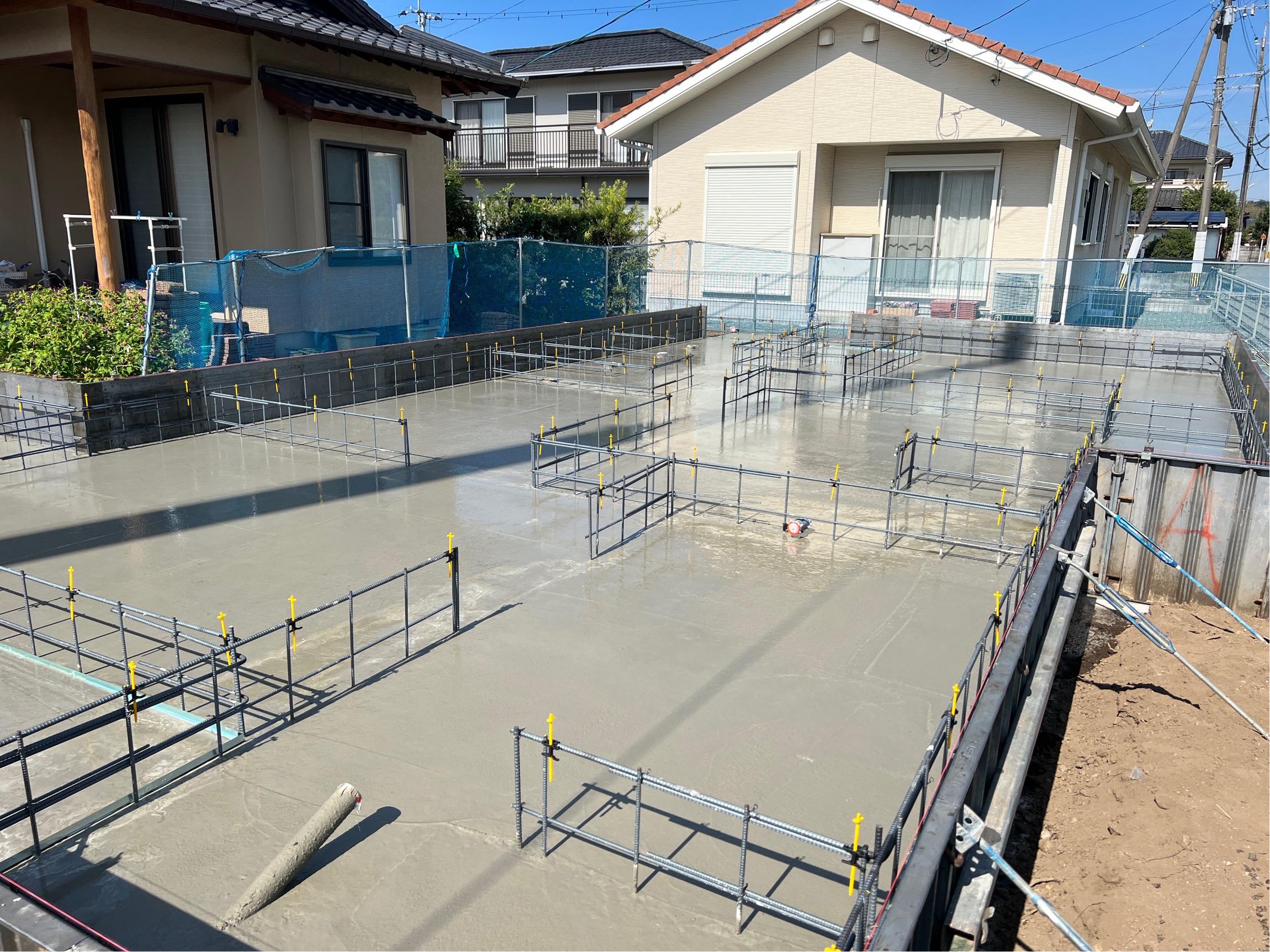 まだまだ残暑が残る熱さ…ベース打設状況です!